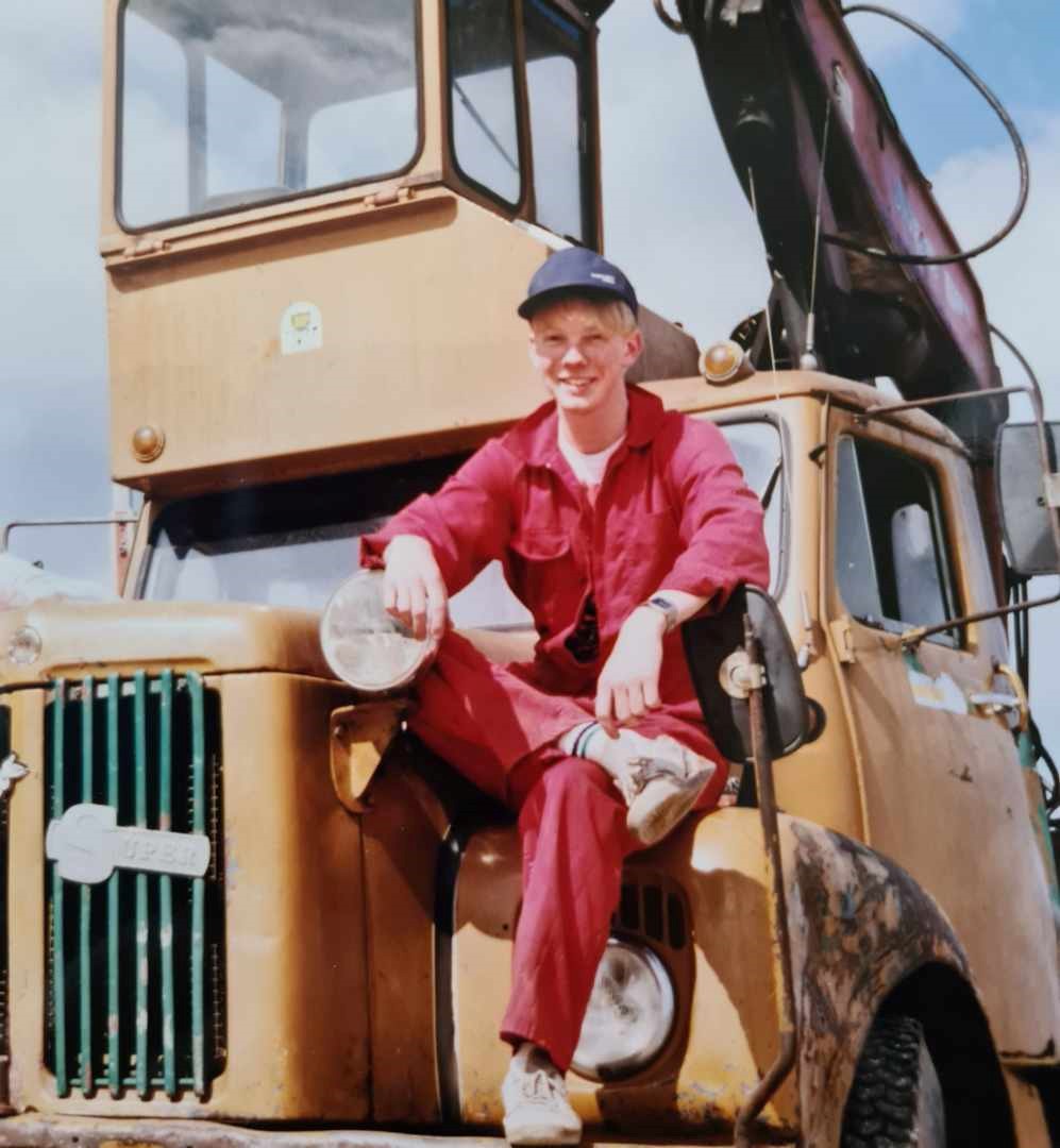 Tredje generationen Emil Sandres 19 år har precis börjat köra flisbil.